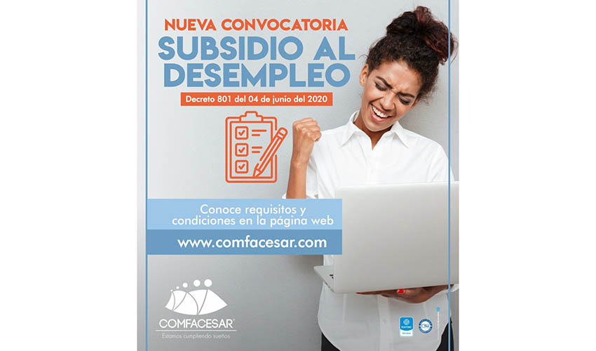 La Caja de Compensación Familiar del Cesar (COMFACESAR), abrió a partir desde este martes, una nueva convocatoria para la postulación de población cesante al subsidio de desempleo establecido por el Gobierno Nacional a través del decreto 801 del 04 de junio del 2020, en el marco de la Emergencia Sanitaria decretada por el Ministerio de Salud en virtud de la crisis generada por el Covid-19.