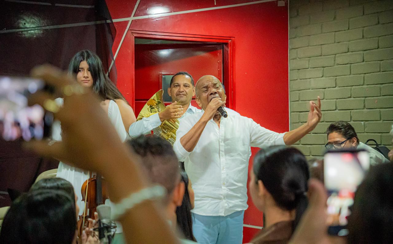 Visiblemente emocionado, Morales se puso de pie, junto a su familia que lo acompañaba, y pidió un aplauso para los jóvenes integrantes de la filarmónica de Comfacesar, quienes lo impresionaron con las versiones sinfónicas interpretadas en el escenario.
