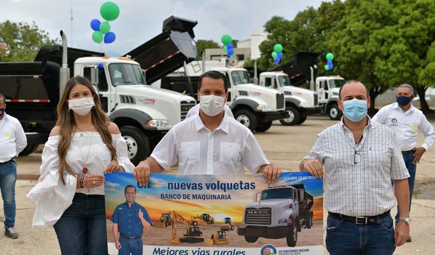 Cinco nuevas volquetas fueron entregadas por el Gobernador del Cesar, Luis Alberto Monsalvo, para el fortalecimiento del banco de maquinaria del departamento que viene trabajando en la intervención y rehabilitación de vías terciarias en todos los municipios.