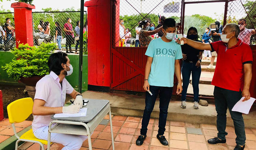 Con un jefe de salón, personal de salud y 15 estudiantes en cada salón previamente aseado, lavado de mano y medición de temperatura, se garantizó el cumplimiento de los protocolos de bioseguridad desde las primeras sesiones en la mañana y la segunda por la jornada de la tarde.