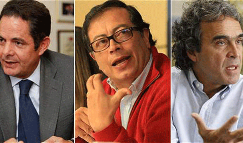 Los candidatos a la presidencia de Colombia, Gustavo Petro, Sergio Fajardo y Germán Vargas Lleras, aparecen encabezando en empate técnico, la intención de voto para las próximas elecciones, según encuesta contratada y publicada por Caracol Radio y Red Más Noticias.